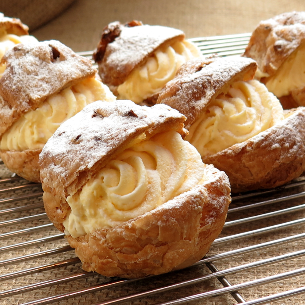 Bánh su kem với lớp vỏ vàng nhẹ, mềm mịn, khi cắn vào sẽ cảm nhận ngay nhân kem béo ngậy, mát lạnh và ngọt dịu tan chảy trong miệng. Không quá ngọt, không ngấy, bánh su kem thích hợp làm món tráng miệng, ăn vặt hoặc đãi tiệc nhẹ nhàng. Đây cũng là lựa chọn tuyệt vời để làm quà tặng ngọt ngào cho người thân, bạn bè.